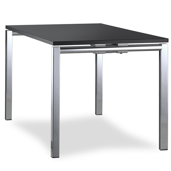 4-Fußklapptisch mit Quadratrohrgestell. Das Gestell bietet optimale Beinfreiheit und ist hochwertig verchromt oder beschichtet ausgeführt.