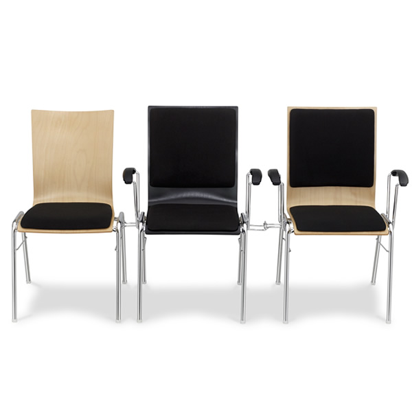 Durch die senkrechte Stapelbarkeit und die leichte Handhabung ist dieses Modell für Hallen- und Saalbestuhlung bestens geeignet. Die Armlehnen sind nachrüstbar. Verschiedenste Schalenvarianten möglich.