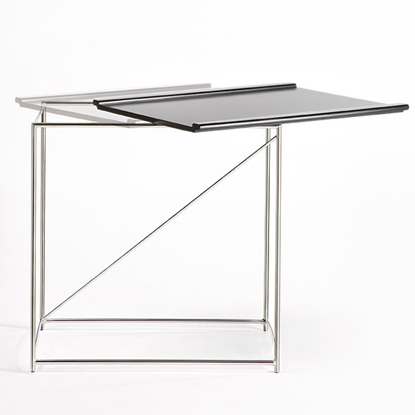 Die MDF-Tischplatte lackiert in schwarz oder weiß kann auch als Ablage genutzt werden.