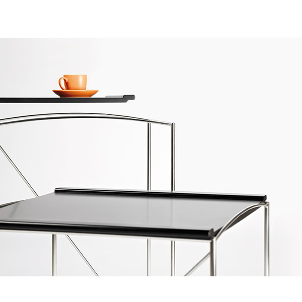 Gestell aus verchromten Stäben. Zwei Plattengrößen.