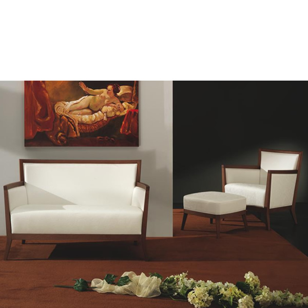 Stuhl und Zweierbank aus Buche/gebeizt nach Hauskollektion, Gepolstert nach umfangreicher Hauskollektion